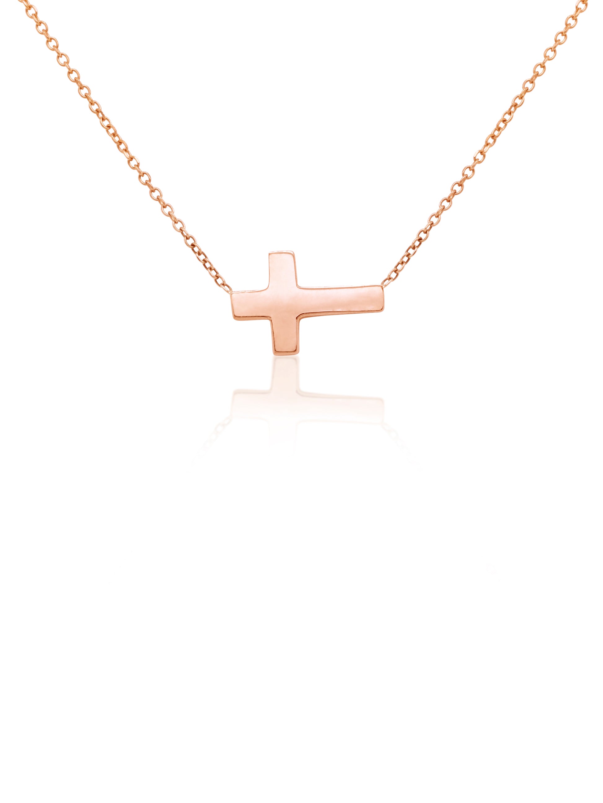 Modern elegance meets timeless faith in this 9 carat rose gold sideways cross necklace. Featuring a sleek horizontal cross on a 41cm chain, this piece offers a minimalist yet meaningful design. Its soft rose gold tone adds a romantic touchperfect for layering or wearing solo as a symbol of personal style and spirituality.