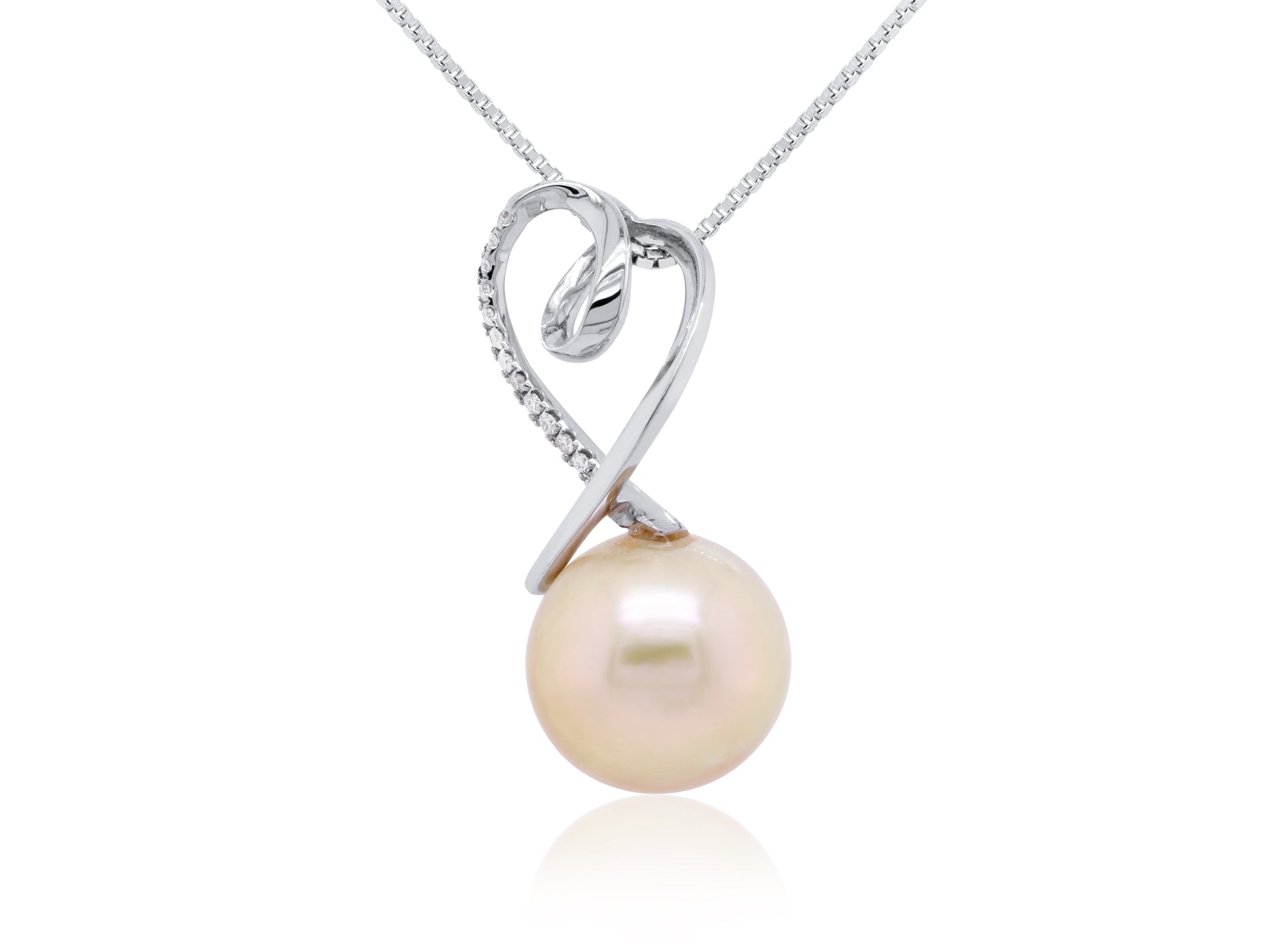 A graceful balance of purity and sparkle, this pendant features an 11mm golden South Sea pearl, elegantly set in 9 carat white gold. Accented with 0.06 carat of GHSI diamonds and suspended from a silver chain, it’s a refined statement of natural beauty and understated luxury—perfect for day-to-night elegance.