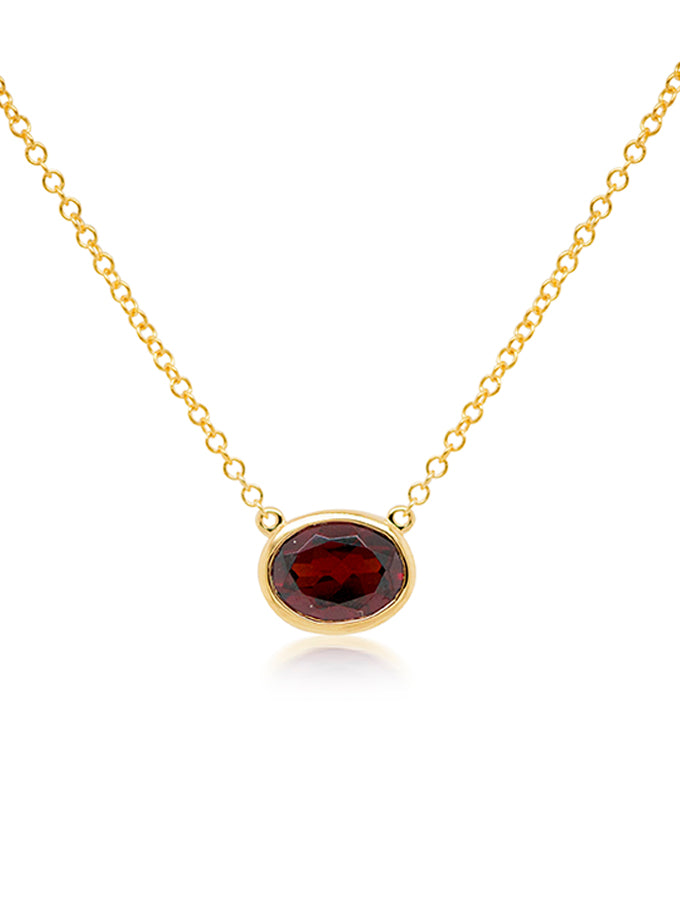 9K YG 8x6mm Oval Garnet pendant, 45cm