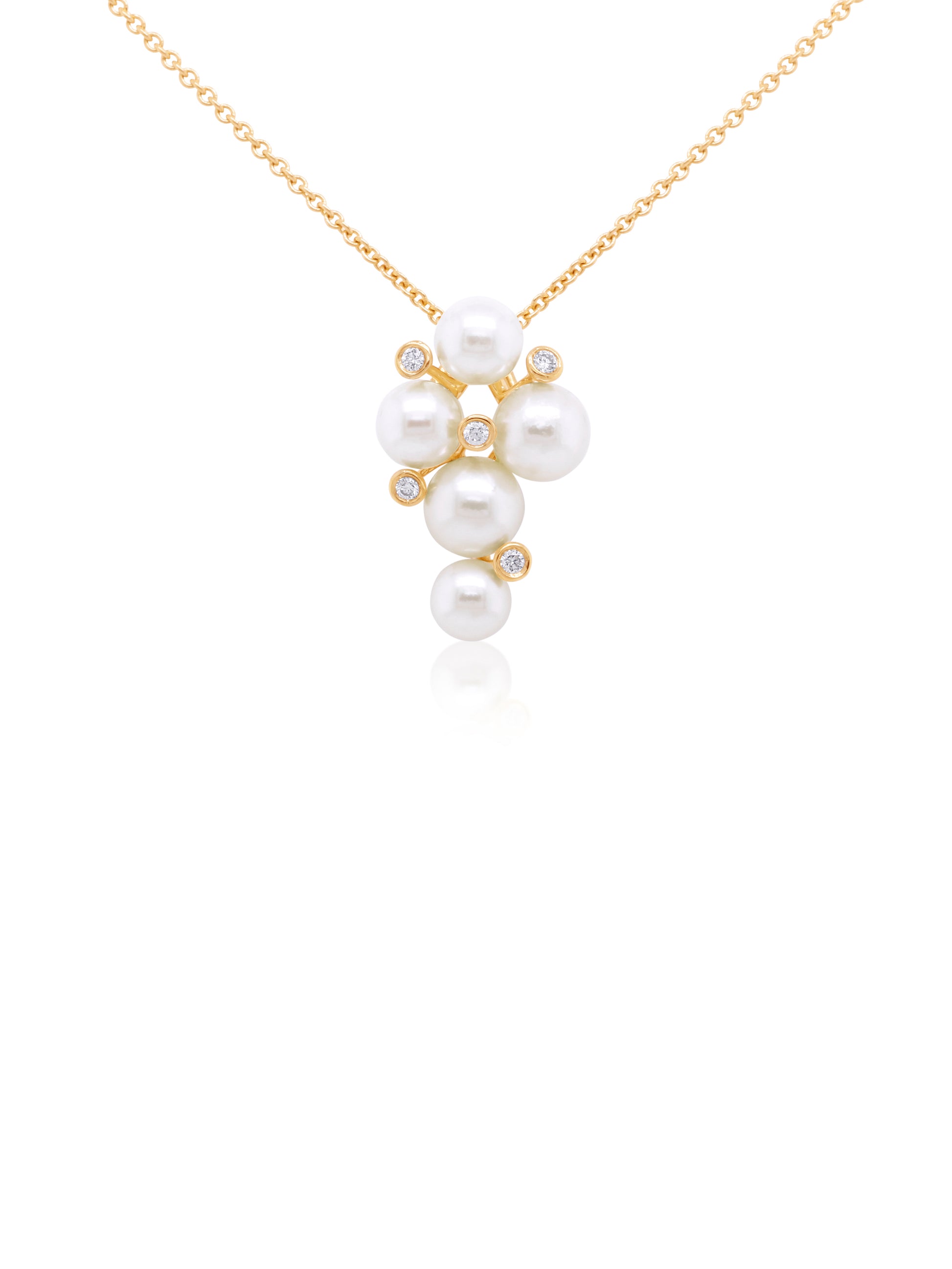 Elegant and refined, this Akoya Pearl & Diamond Necklace is crafted in 18 carat yellow gold and features five luminous Akoya pearls (4.56mm) accented by five sparkling diamonds totalling 0.05 carat. Measuring 42cm in length, it sits beautifully on the neckline, adding a delicate shimmerperfect for weddings, special occasions, or everyday luxury.