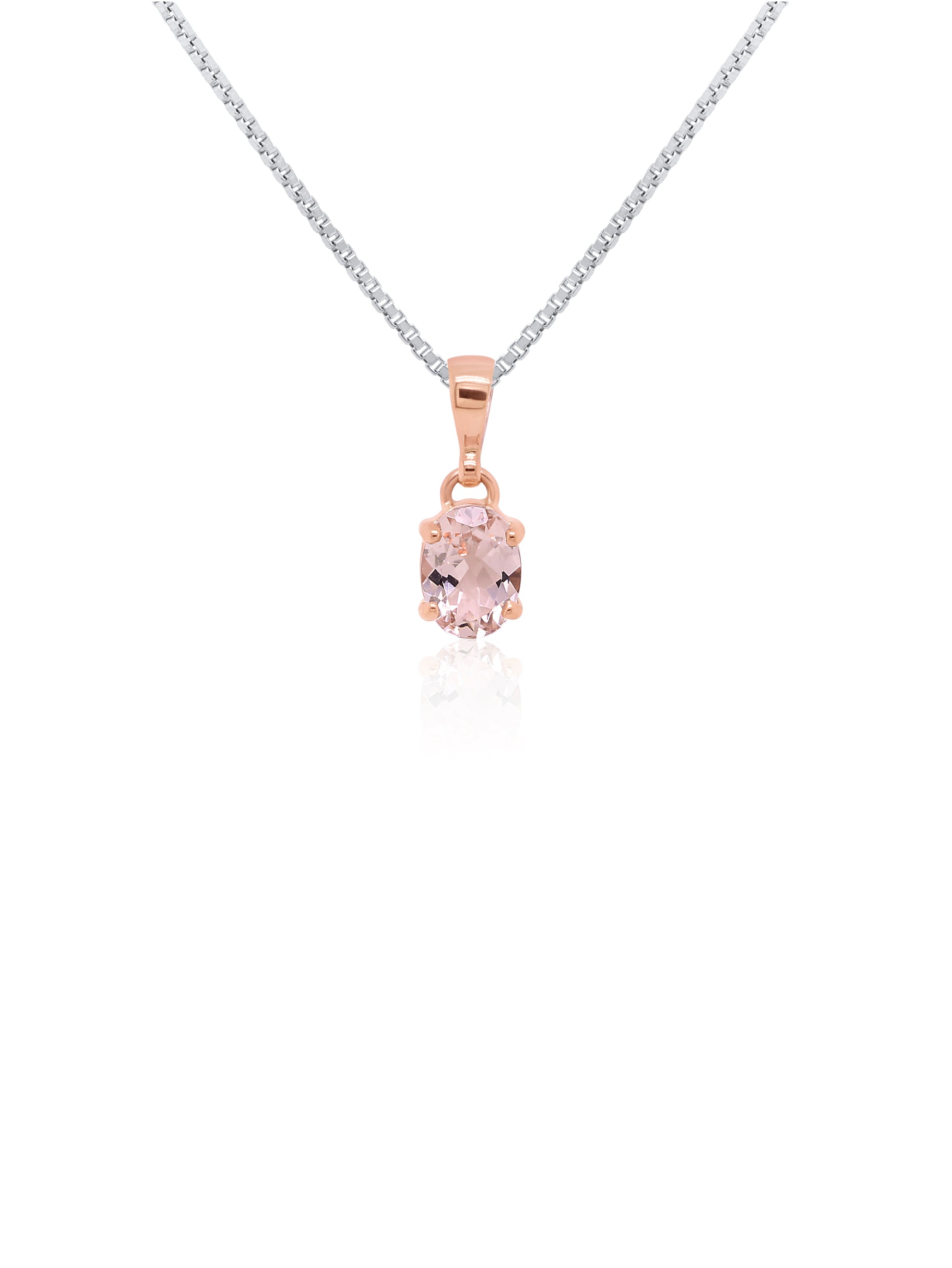This elegant pendant features a soft pink oval morganite set in 9 carat yellow gold. A romantic and feminine piece perfect for everyday luxury.