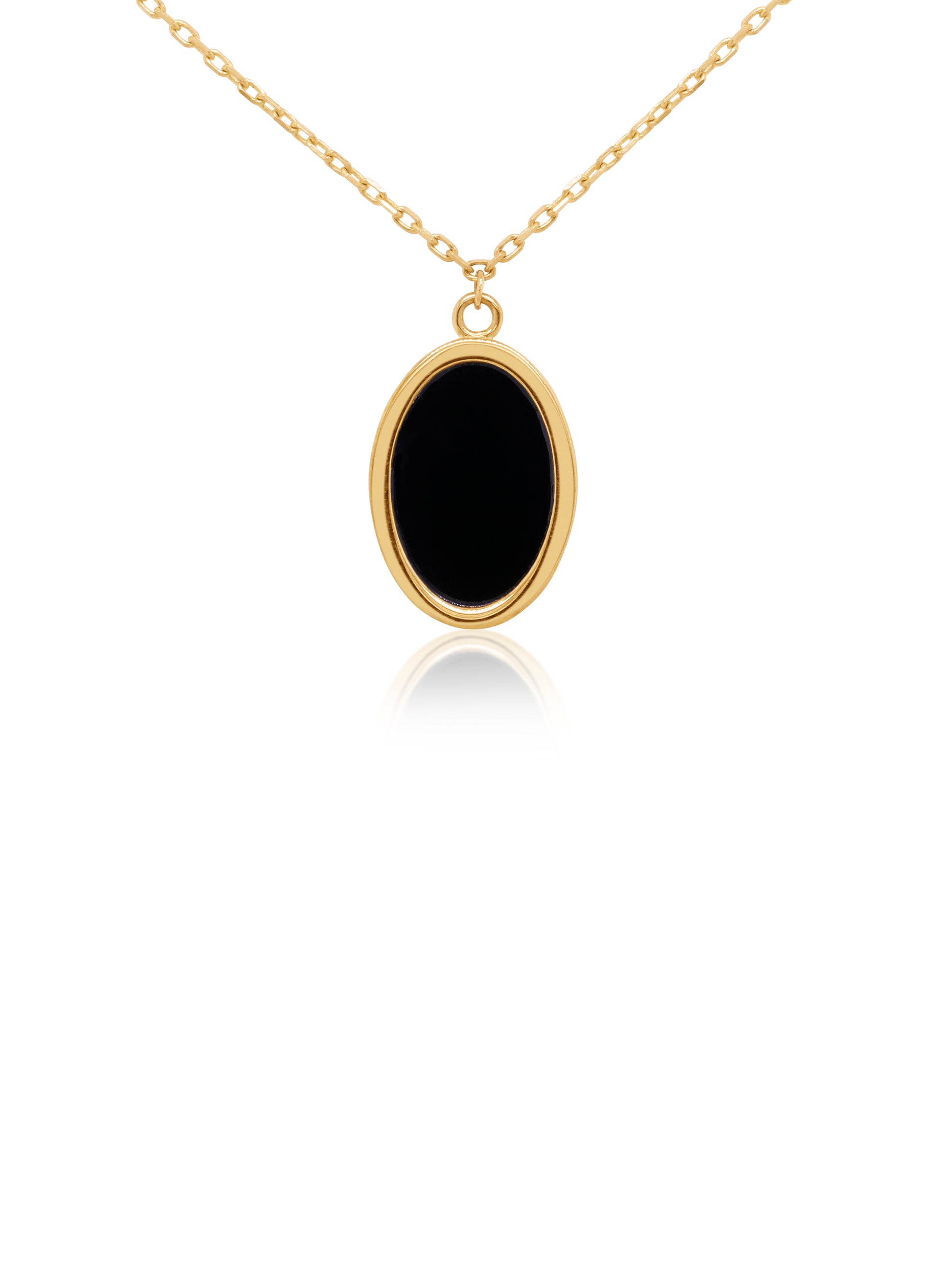Black Onyx Oval Necklace on a 45cm chain set in 9 Carat Yellow Gold