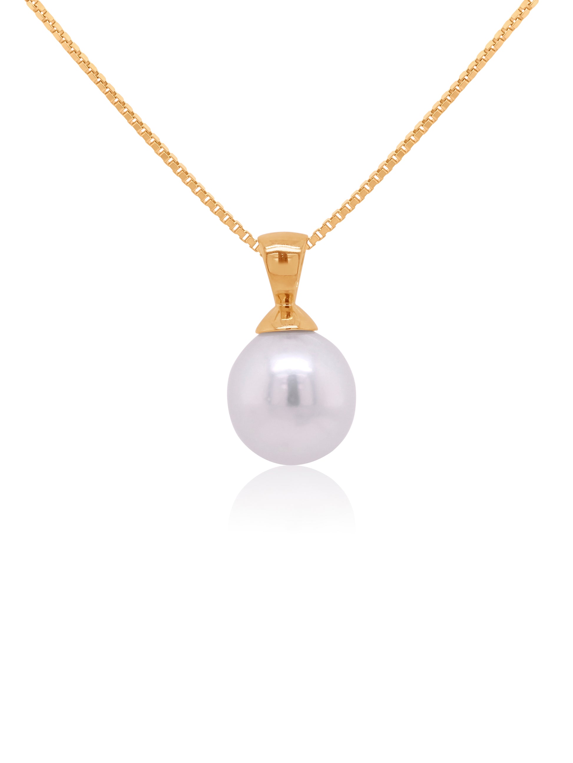 This exquisite South Sea pearl drop pendant in 9 carat yellow gold features a 9mm South Sea pearl. A refined and elegant addition to any jewellery collection.