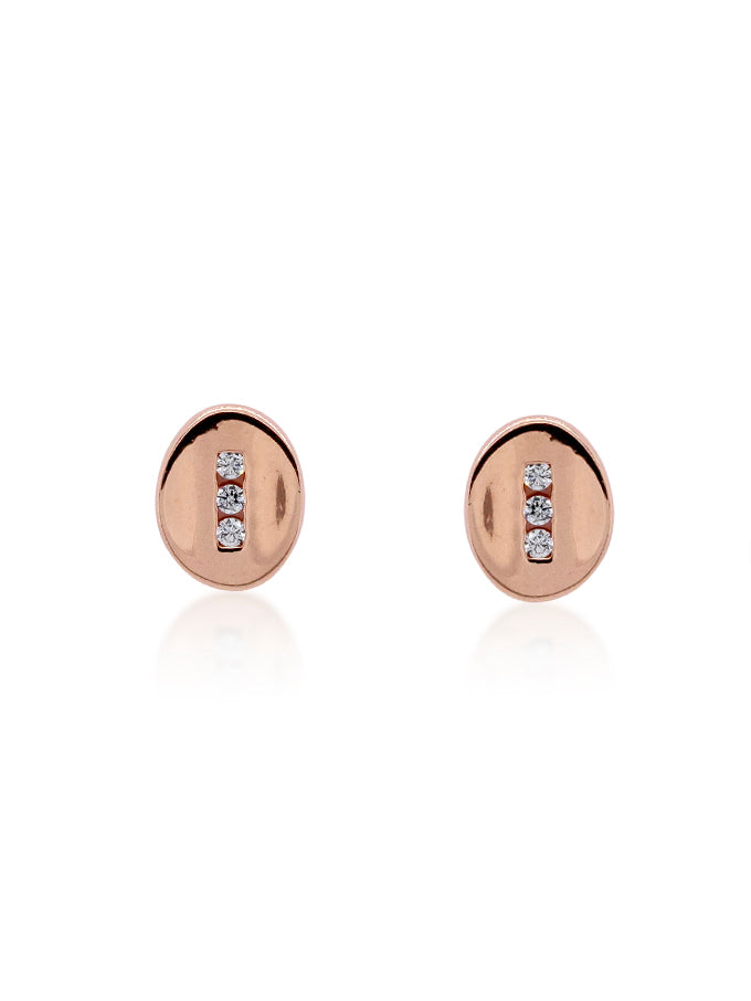 Cubic Zirconia Concave Studs, 9K Rose Gold