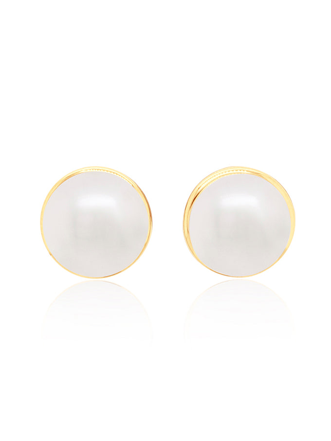 Classy Fresh Water Pearl Studs in 9 Carat Yellow Gold, 6-6.5mm