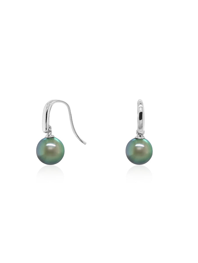 9mm Lusturous Tahitian Pearl Drop Ear Rings, 9K White Gold