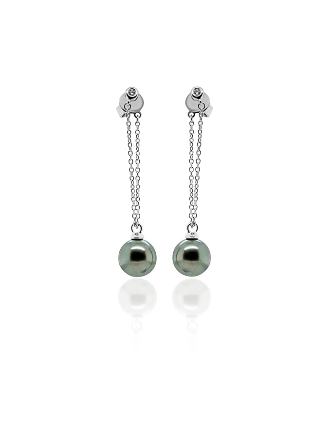 Tahitian Pearl & Diamond, Chain Earrings, 18K White Gold