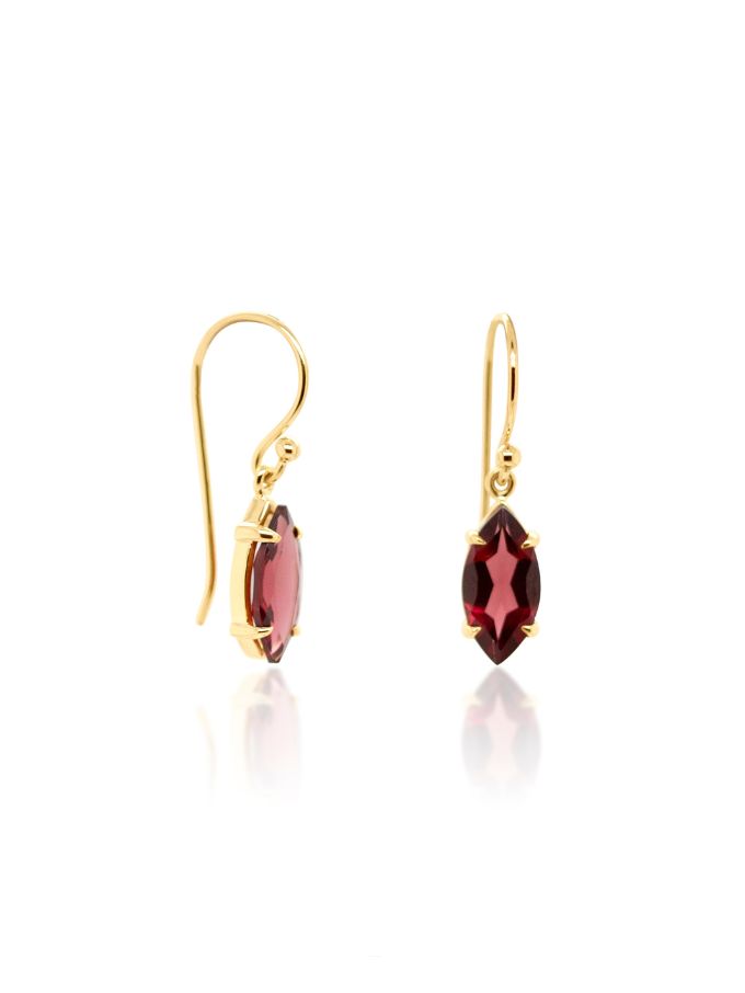 Marquise Garnet Earrings 9K Yellow Gold, Sheperd Hook