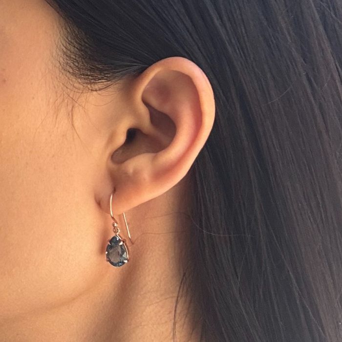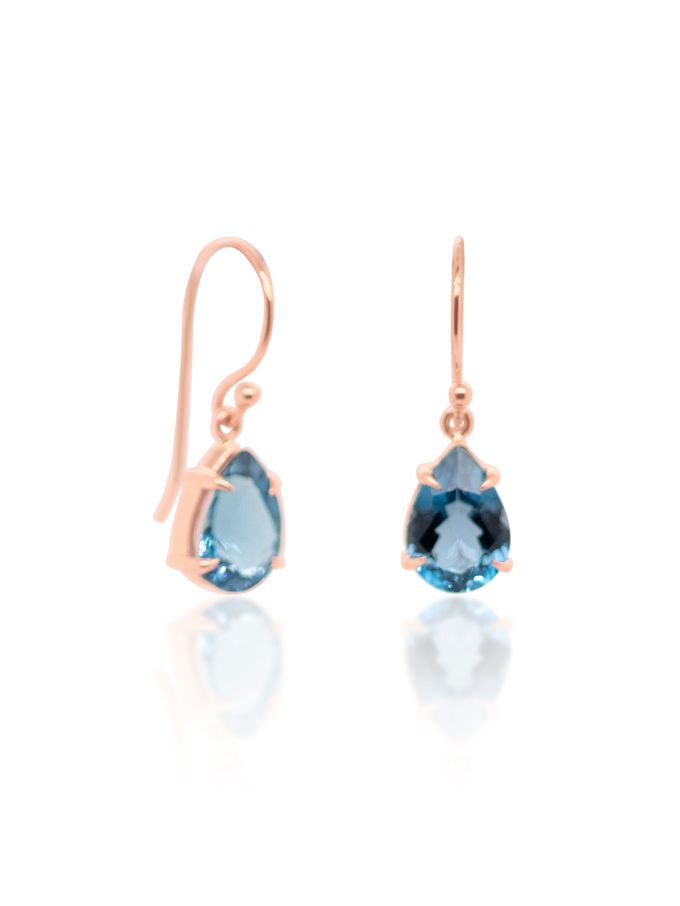 Pear Cut London Blue Topaz Earring in 9 Carat Rose Gold