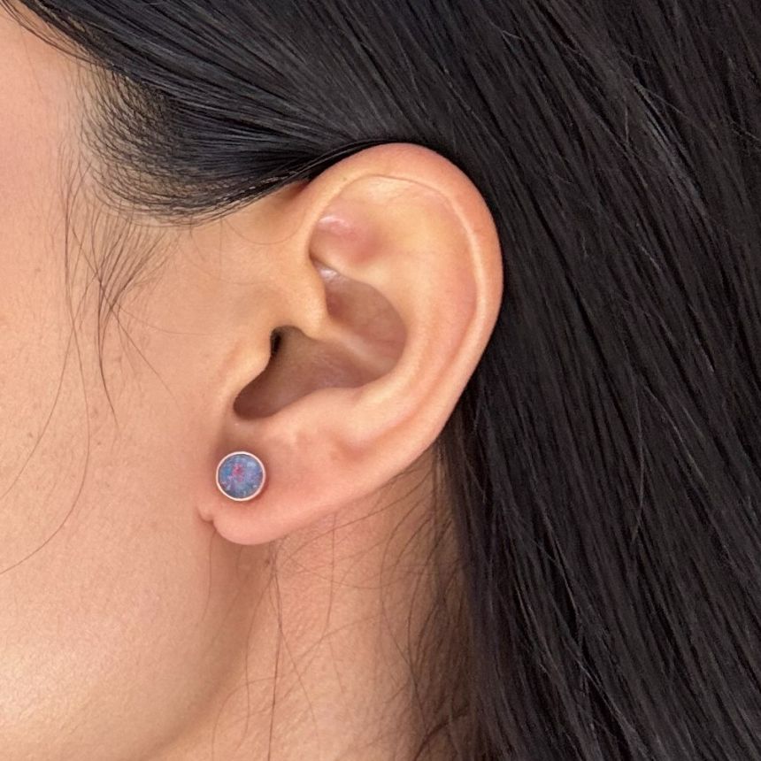 Opal Stud earrings, 9K Rose Gold, Doublet.
