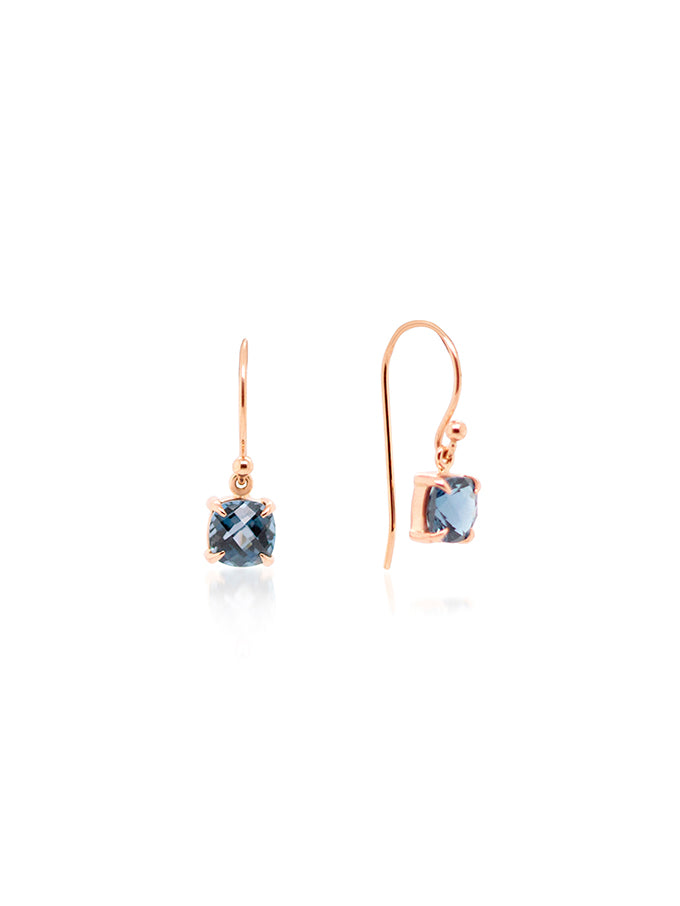 London Blue Topaz Earring in 9 Carat Rose Gold Shepherd Hooks