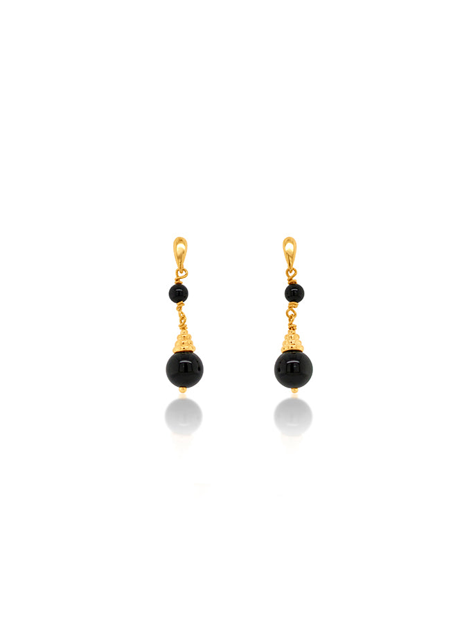 Onyx Stud Drop Earrings, 9K Yellow Gold