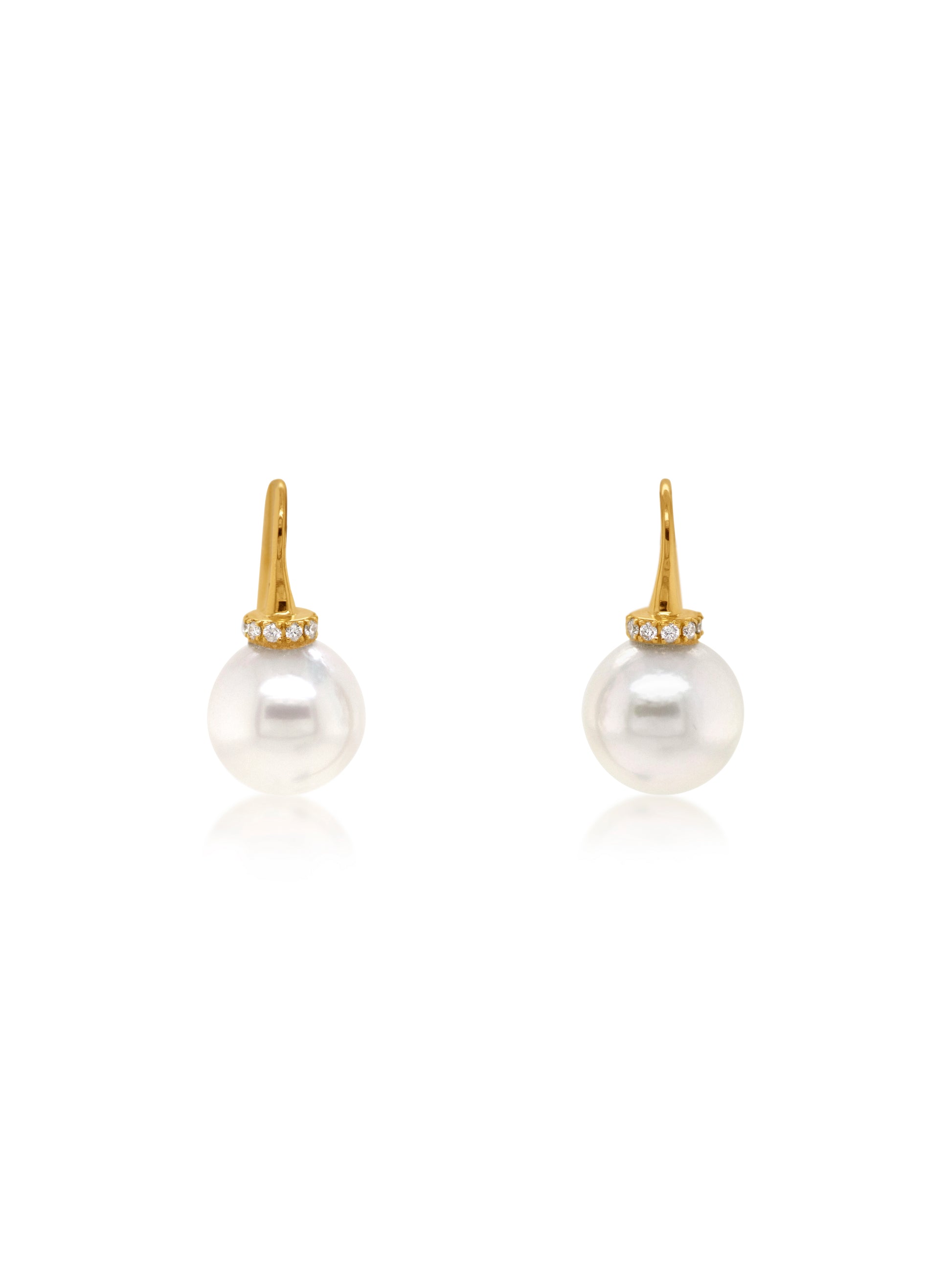11mm South Sea Pearl & Diamond Drop Earrings, 18 Carat Yellow Gold