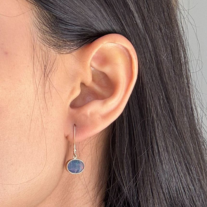 Double Opal Drop Earrings, 9 Carat Yellow Gold