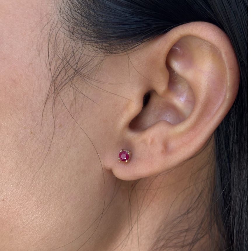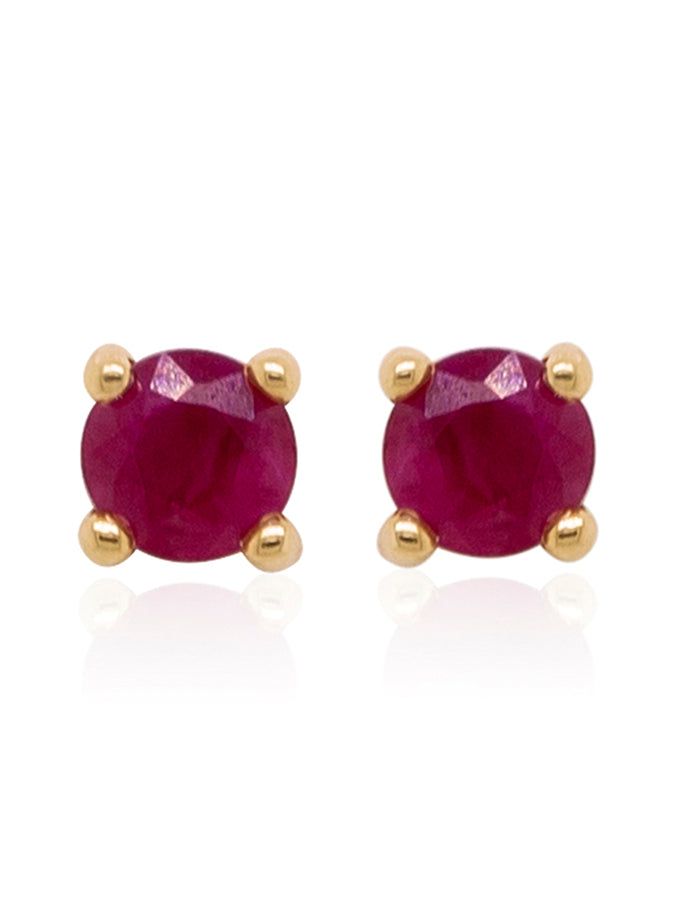 3.50mm 4 Claw Ruby Stud Earrings in 9 Carat Yellow Gold