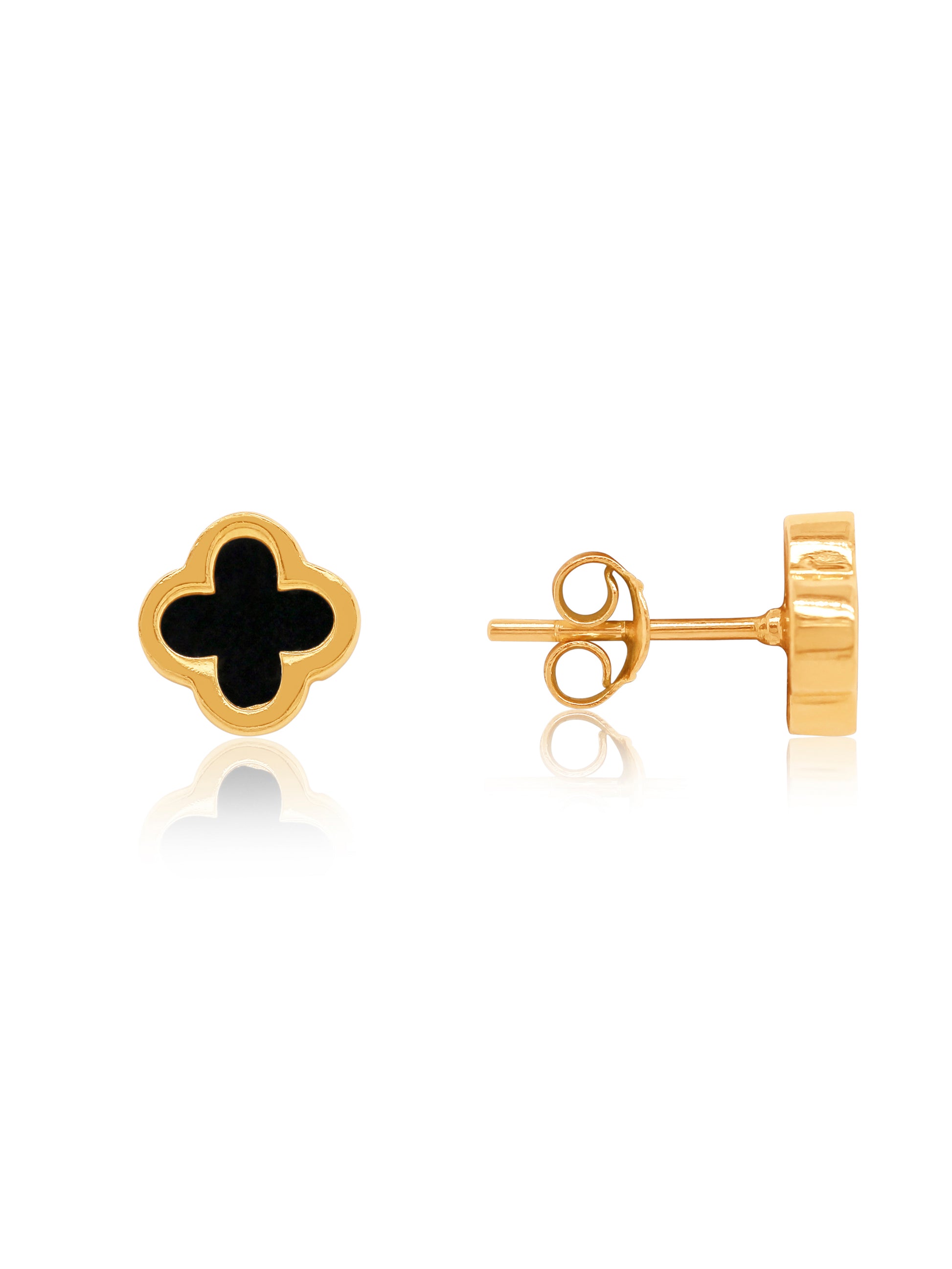 Medium Black 4 Leaf Clover Stud Earring in 9 Carat Yellow Gold