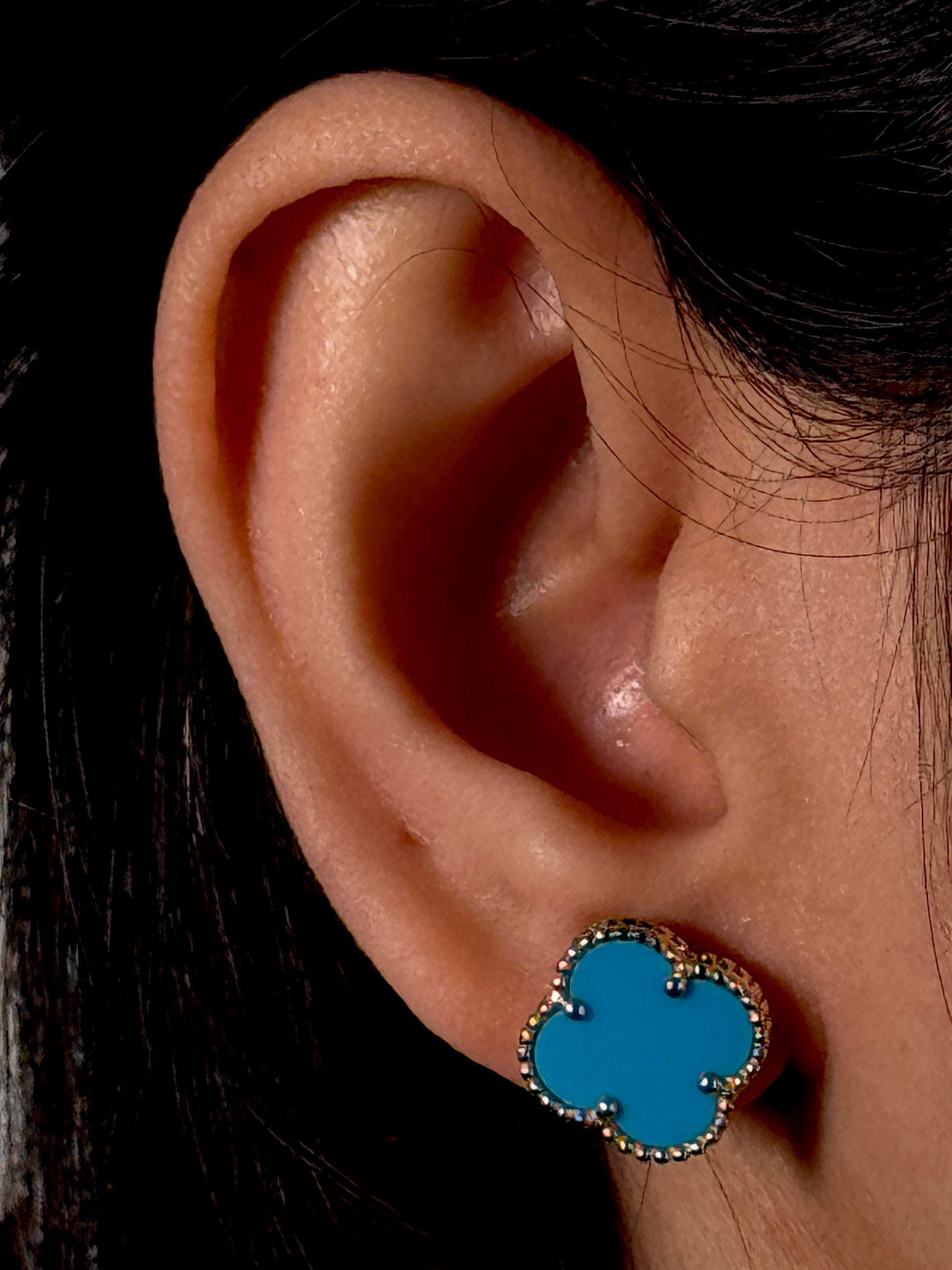 Fancy Turquoise Large Clover Stud Earrings, 9 Carat Yellow Gold