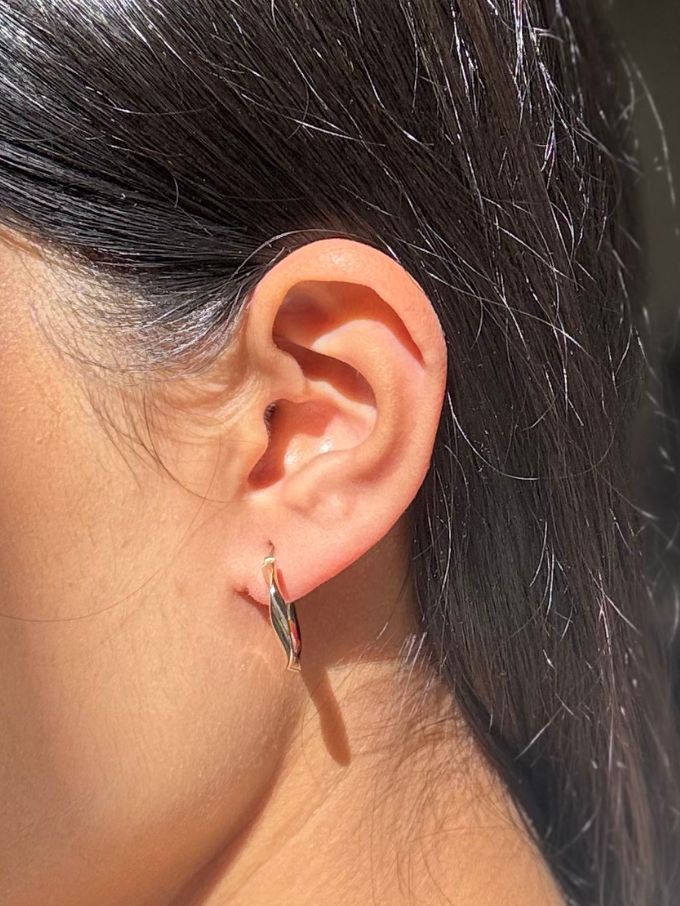The unique swirl design creates a dynamic visual effect, offering a modern twist on classic hoops. Crafted from radiant yellow gold, these earrings are perfect for adding a touch of sophistication to any outfit, whether for casual or formal occasions.