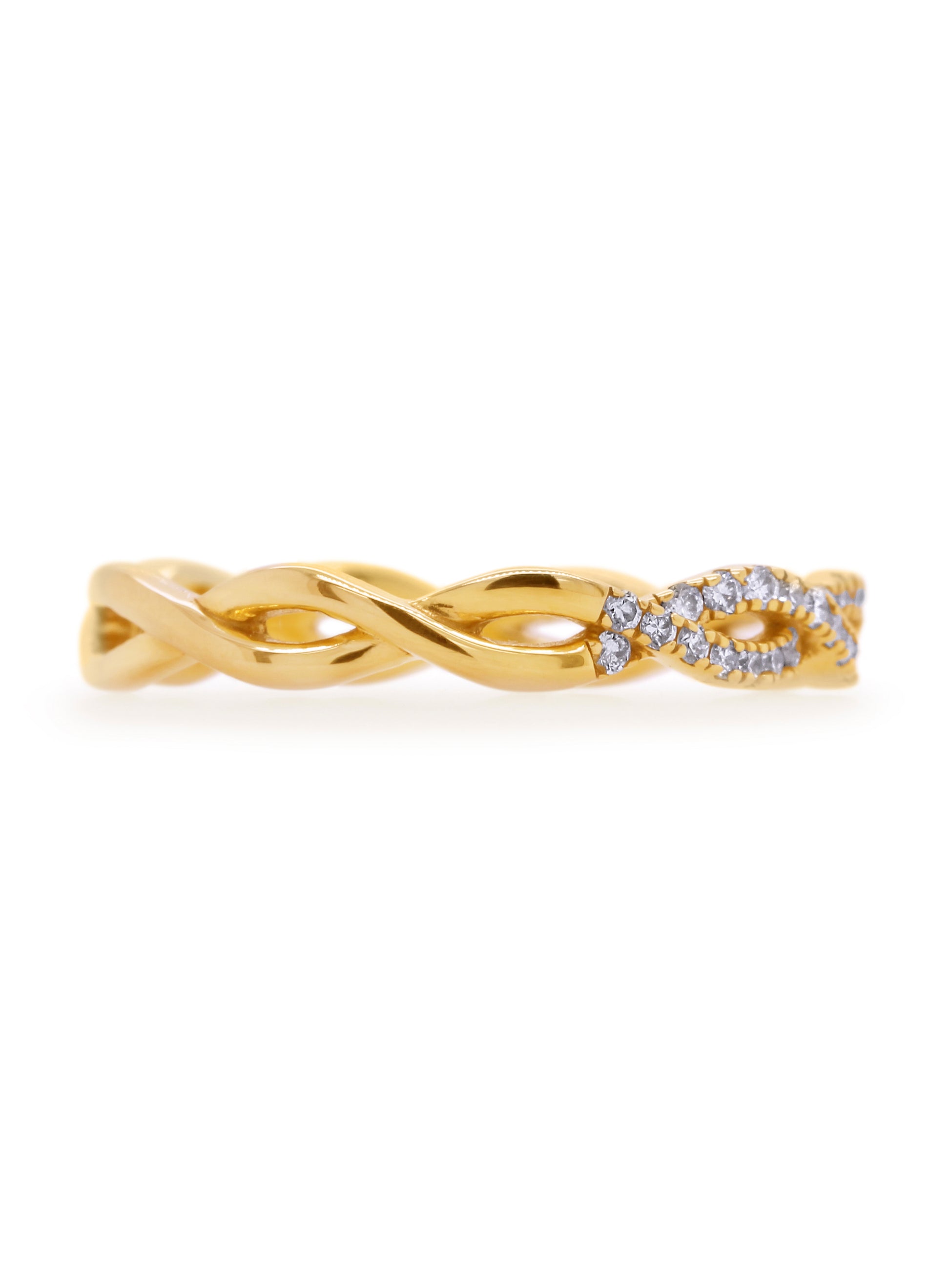 A graceful diamond set infinity ring in 18 carat yellow gold, adorned with 0.22 carat of sparkling round brilliant cut diamonds. A timeless symbol of eternal love and connection.