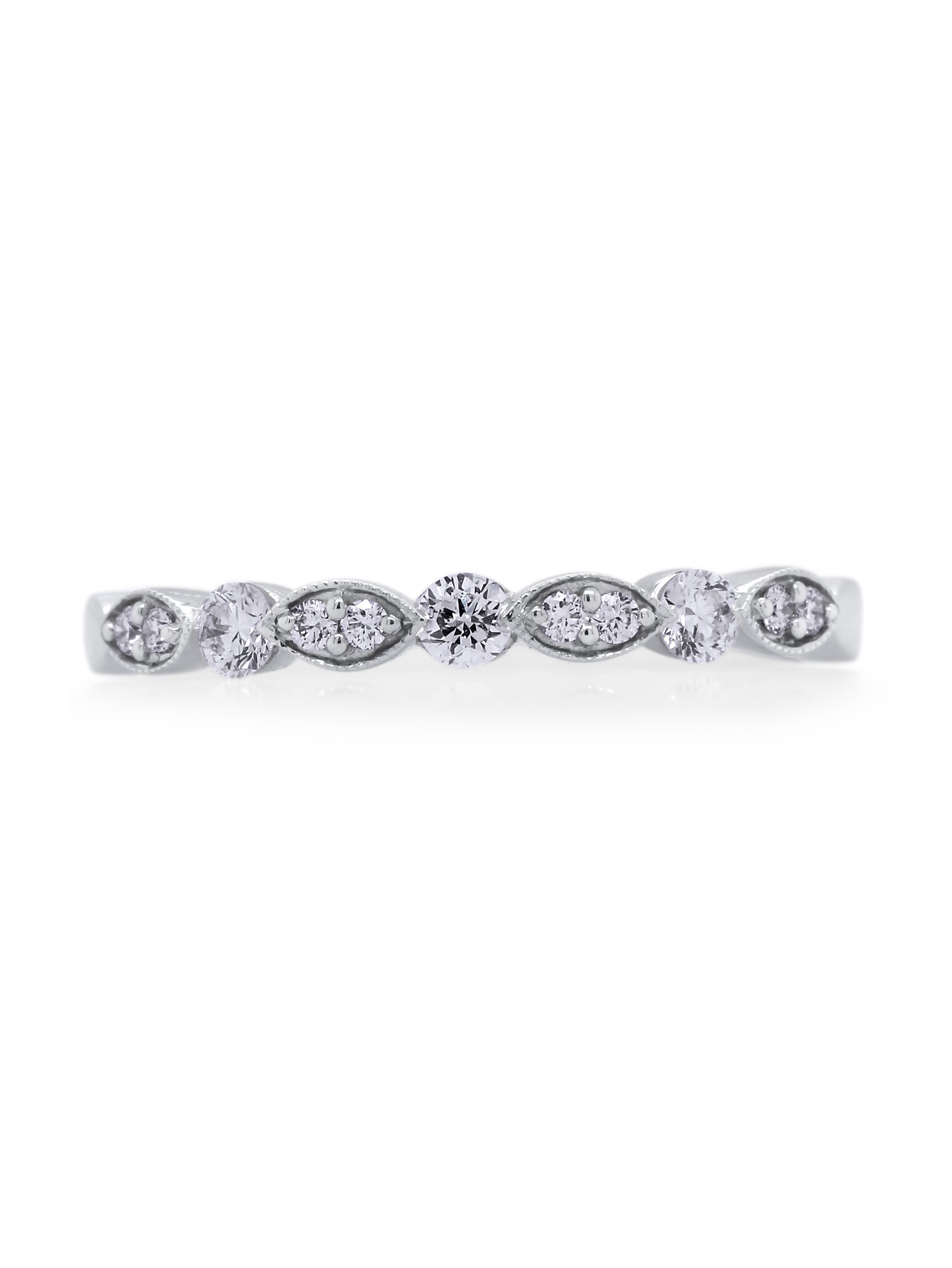 A charming antique-style diamond band crafted in 18 carat white gold, featuring 0.27 carat of H colour, SI clarity diamonds in a delicate vintage-inspired design. Perfect for everyday elegance or stacking.