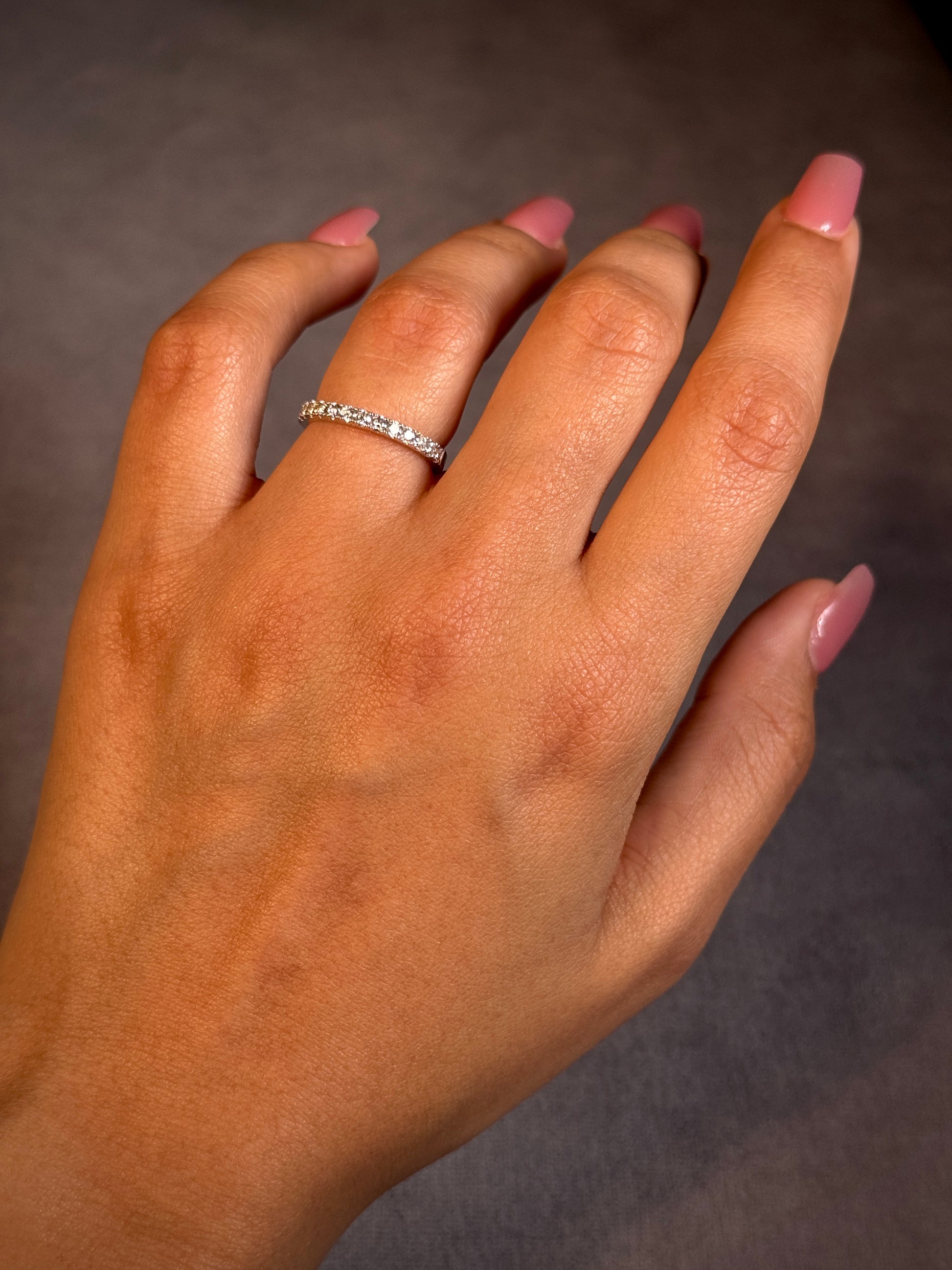 A timeless diamond set band in 18 carat white gold, featuring 13 round brilliant-cut diamonds totaling 0.39 carat, H colour SI clarity. The claw setting enhances brilliance, creating a refined and elegant look.