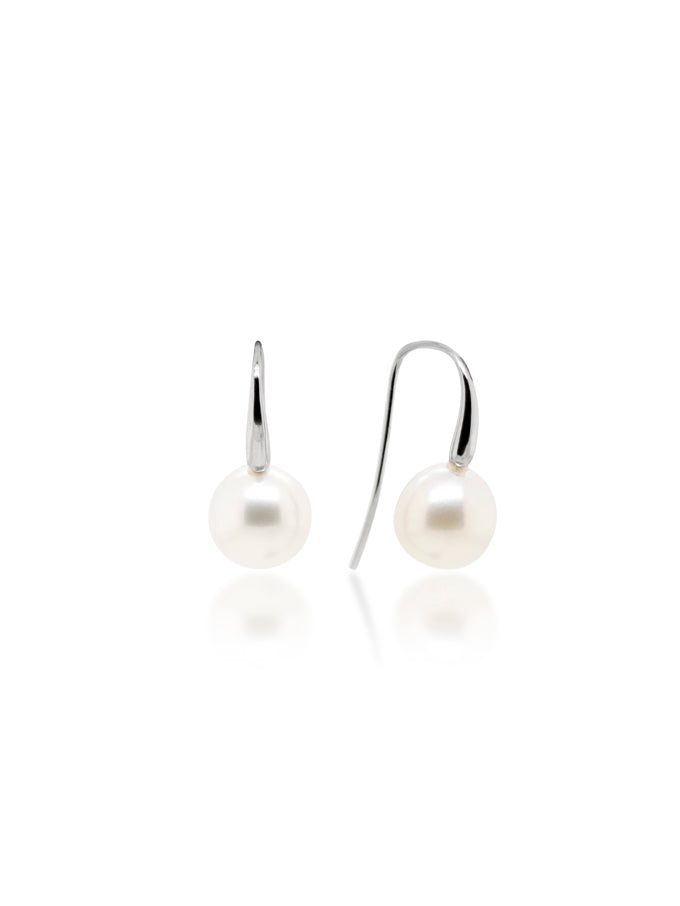 Akoya Cultured Pearl hook drop earrings, 9K WG