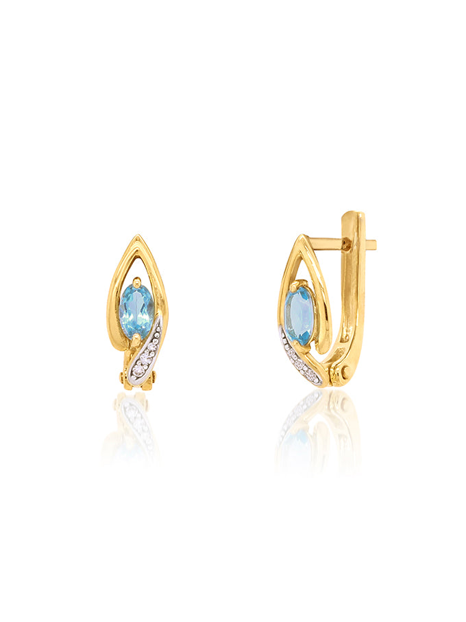 Blue Topaz & Diamond Earrings in 9K Yellow Gold