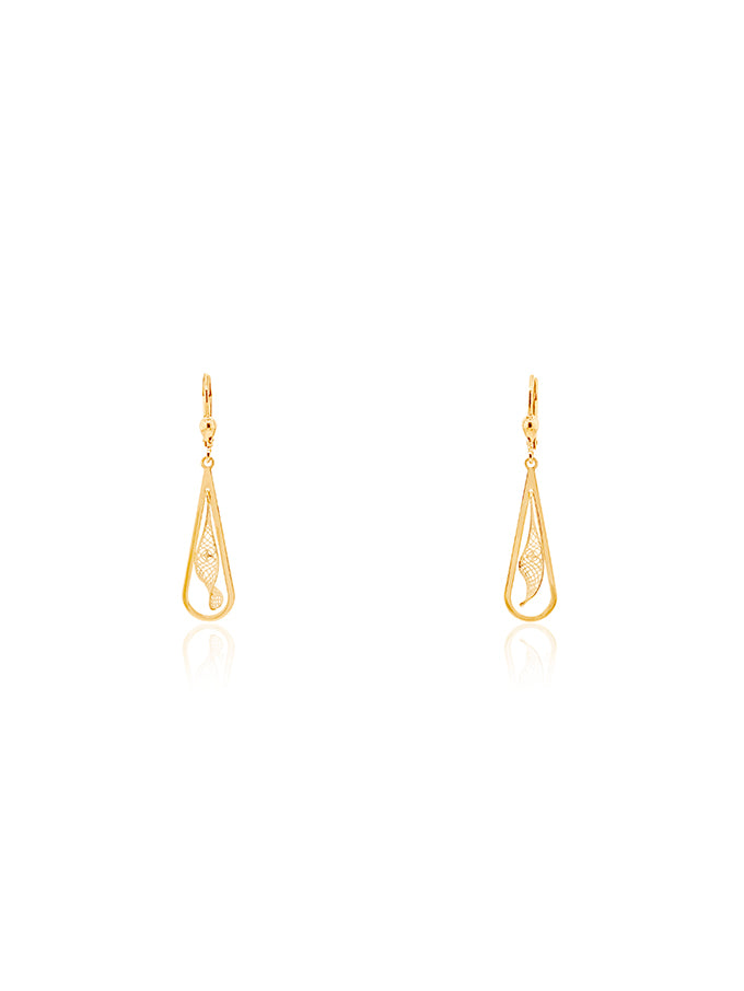 Curved Filigree Drop Earrings in 9 Carat Yellow Gold