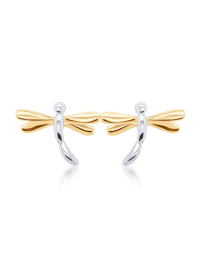 Dragonfly Stud Earrings in 9 Carat Yellow & White Gold