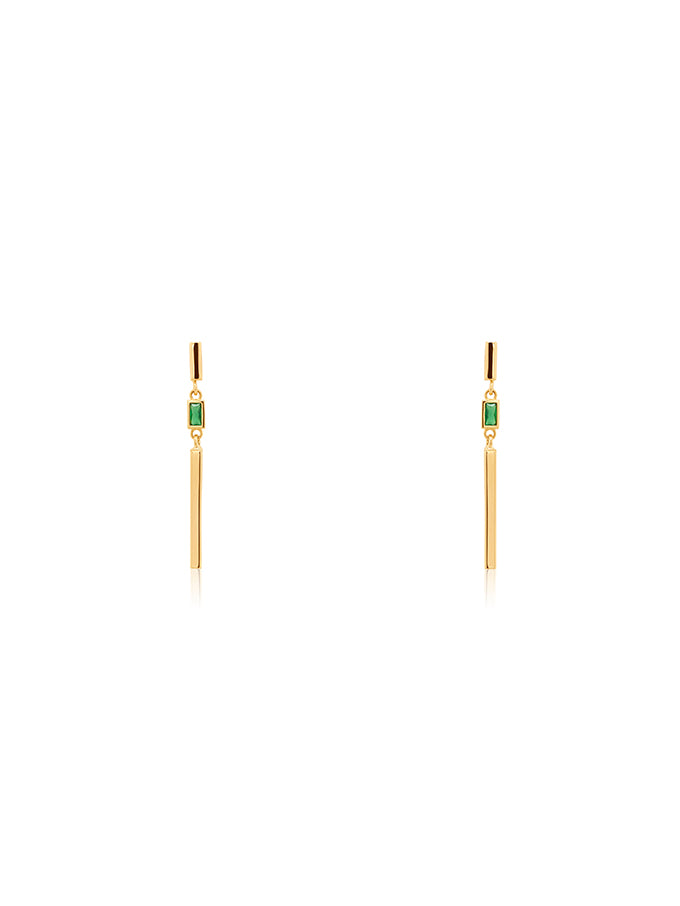 The sleek bar design is accented with a striking green stone, offering a pop of color and a contemporary twist. Crafted from radiant yellow gold, these earrings are perfect for both casual and formal settings, adding a touch of modern elegance to any ensemble.