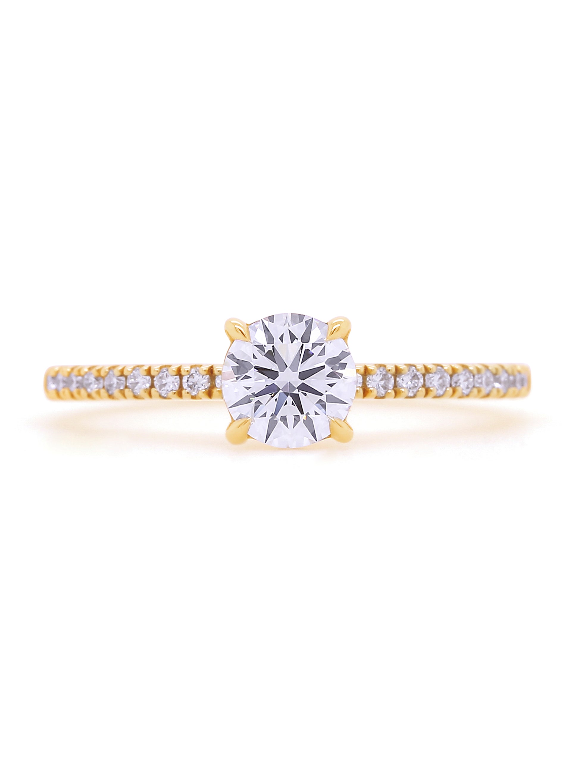 Discover our 0.70 Carat Lab Grown Diamond Ring in 18K Yellow Gold. The dazzling 18 diamonds add a touch of sophistication, making it a modern and ethically conscious choice.
