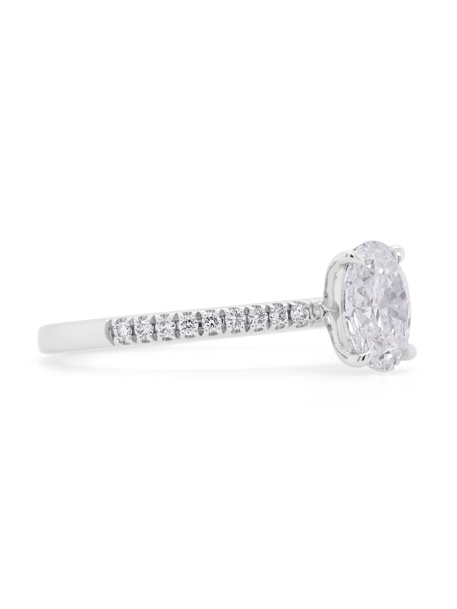 Lab Grown Oval 1.01 Carat Diamond Ring, 18 Carat White Gold