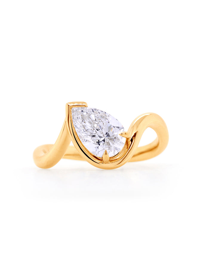 This elegant lab-grown pear-cut diamond ring features a 1.51ct diamond set in 9 carat yellow gold. With F color and VS1 clarity, the diamond is expertly claw and bezel set, making it a striking piece for any occasion.