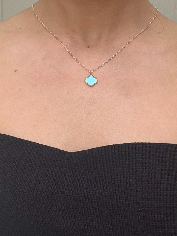 Large Turqoise Clover Pendant 9 Carat Yellow Gold