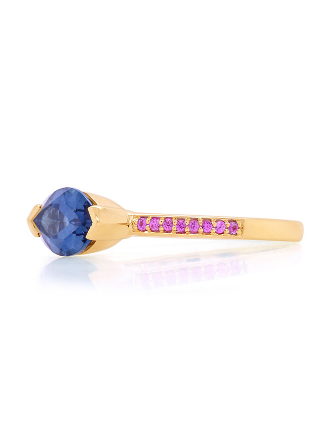 London Blue Topaz & Pink Sapphire Dress Ring in 9 Carat Yellow Gold