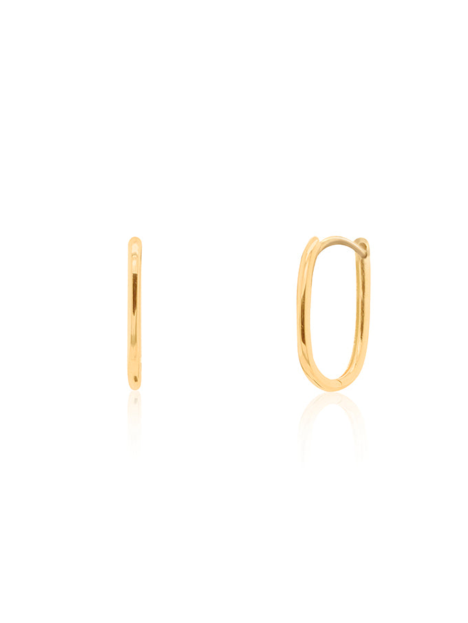 Oblong Huggie Earrings in 9 Carat Yellow Gold, 15x1.6mm
