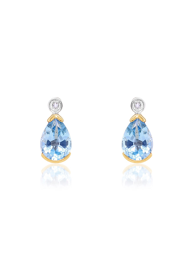 Pear Blue Topaz & Diamond Stud Earrings in 9 Carat Yellow Gold