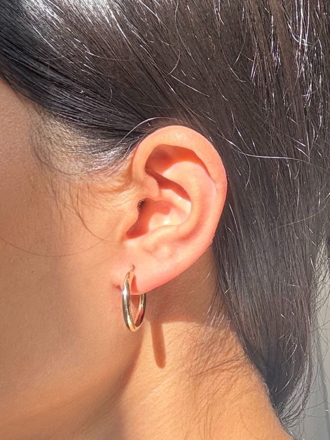 The sleek barrel design offers a contemporary take on classic hoops, providing a bold yet refined style. Crafted from radiant yellow gold, these earrings are versatile enough for everyday wear or special occasions, adding a touch of sophistication to any ensemble.
