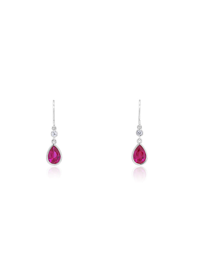 Red Pear & Cubic Zirconia Earrings in Sterling Silver