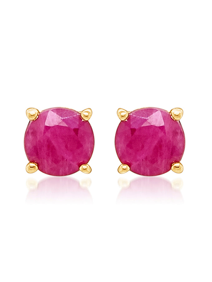 Add a pop of color with these elegant ruby stud earrings. Crafted in 9 carat yellow gold, these classic studs feature 4mm round rubies in a secure claw setting, showcasing their rich red brilliance. Perfect for everyday elegance or special occasions.
