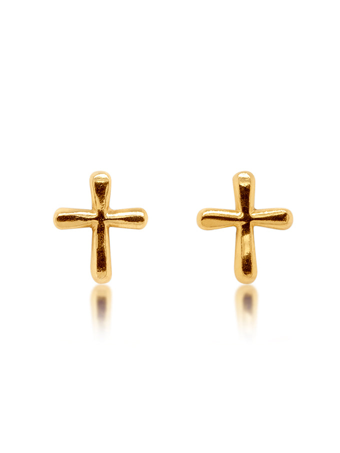 Small Cross Stud Earrings, 9 Carat Yellow Gold