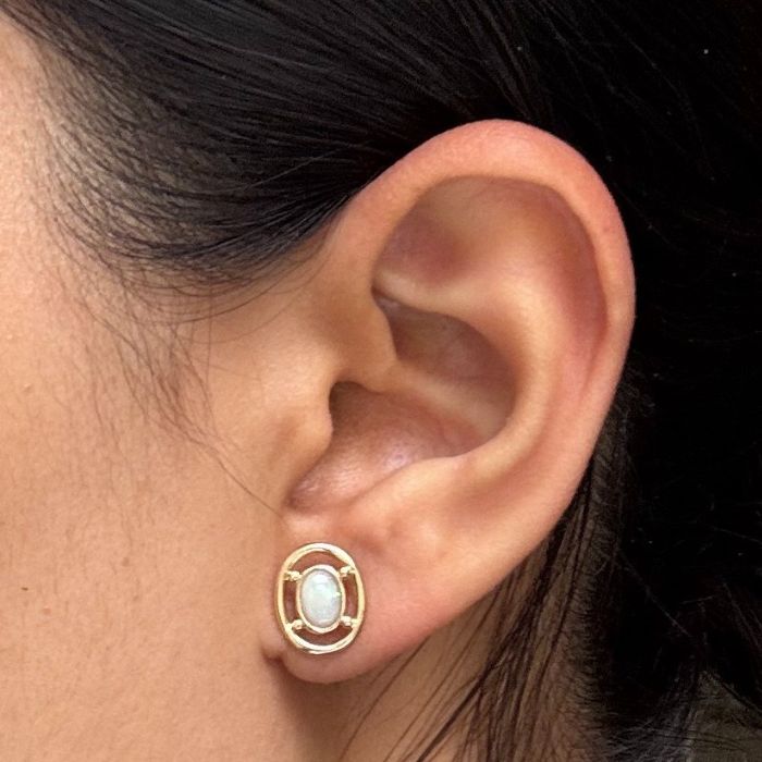 Elevate your style with these Solid Opal Oval Stud Earrings in 9 carat yellow gold. Featuring 6x4mm oval solid opals, these earrings exude timeless elegance and natural beauty.