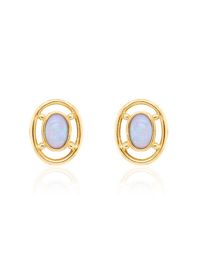 Solid Opal Oval Earrings in 9 Carat Yellow Gold