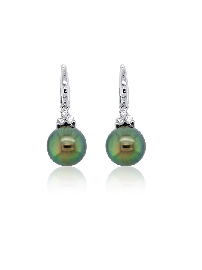Tahitian & Diamond 6=0.20ct GHSI Shepherd Hook Drops, 9K White Gold.