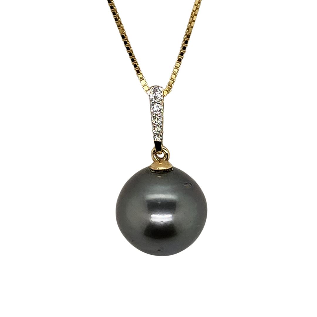 13mm Tahitian Pearl, T=0.08ct Diamonds, 9K YG (plated chain)