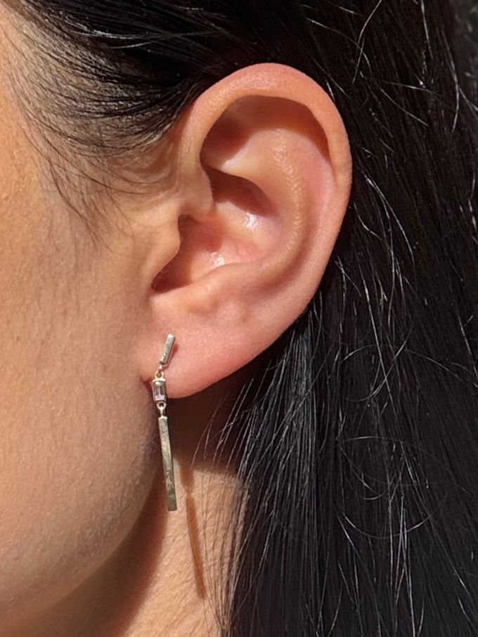 Add a touch of elegance to your wardobe with these Rectangular Cut White Stone Set Bar Drop Earrings in 9 Carat Yellow Gold. The sleek bar design is accentuated by a sparkling rectangular white stone, creating a modern yet sophisticated look. Perfect for both casual and formal occasions, these earrings offer a stylish way to elevate any outfit.