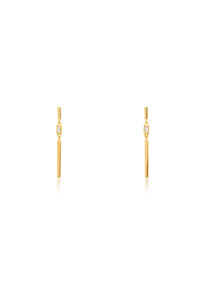 Rectangular Cut White Stone Set Bar Drop Earrings, 9 Carat Yellow Gold