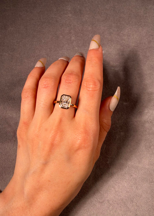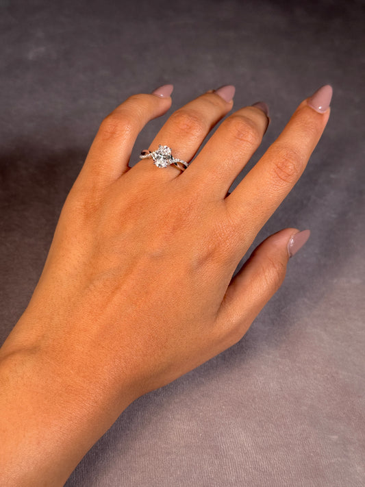 Lab Grown Oval Diamond 1.51ct Ring, 18K Yellow & White Gold.