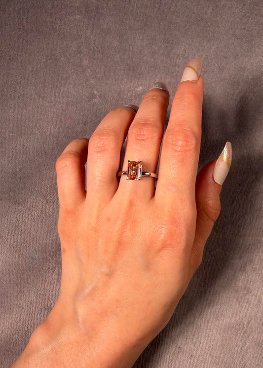 Lab Grown Emerald Cut Diamond Solitaire Ring, 18K White Gold. T=2.02ct