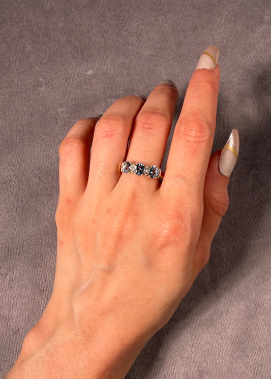 Aquamarine And Diamond Set Trilogy ring, 9k yellow gold